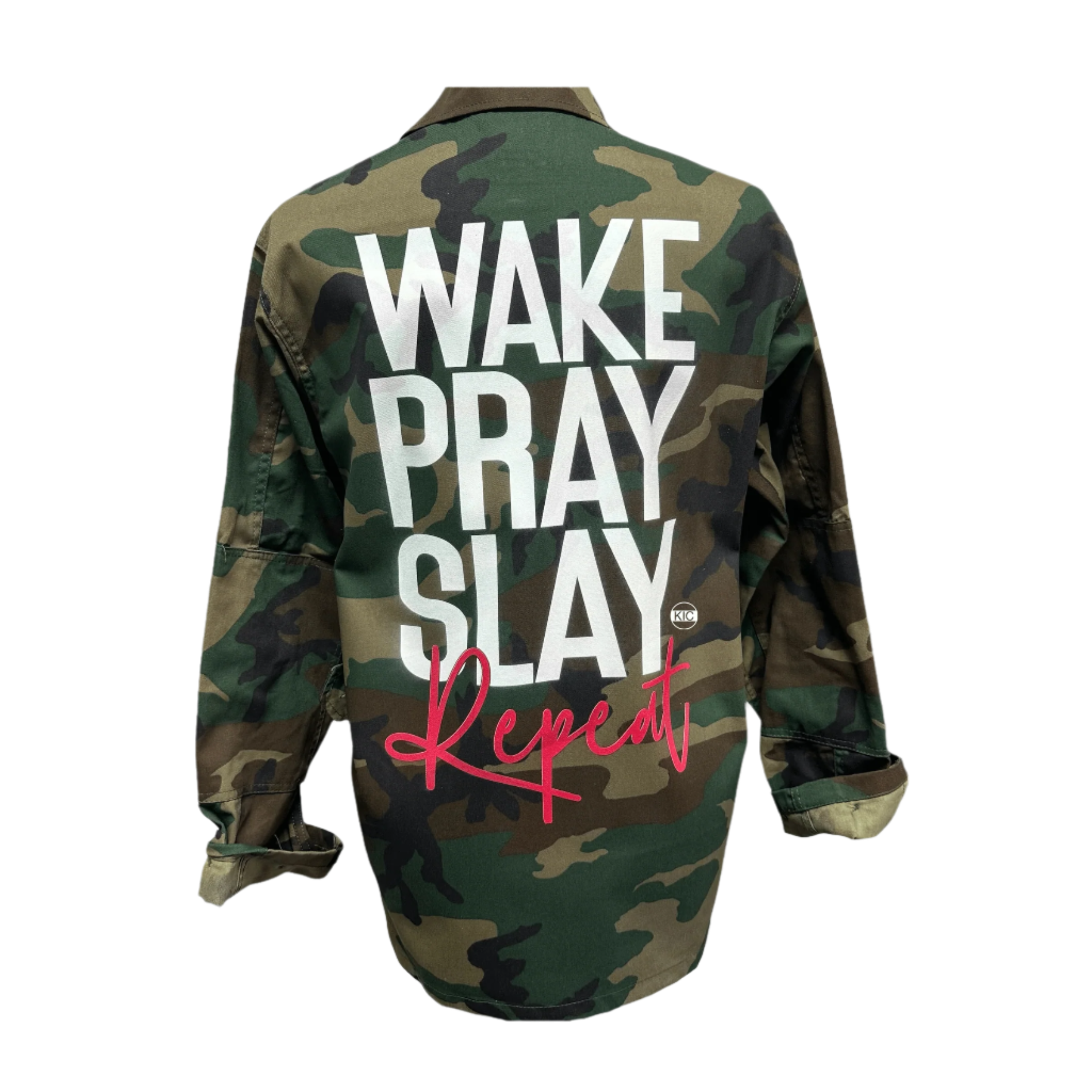 "Wake. Pray. Slay. Repeat." Motivational Jacket